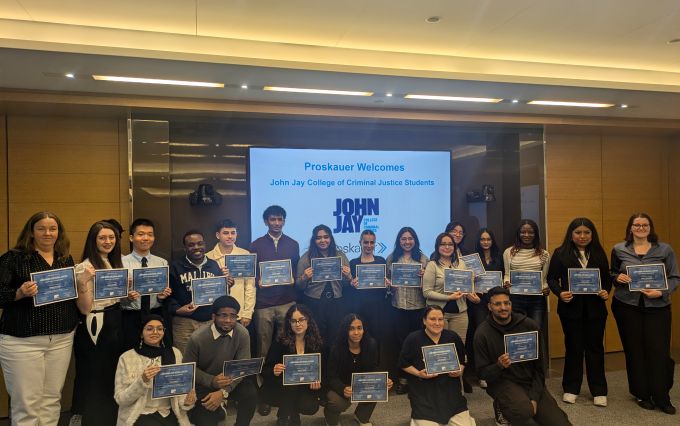 In partnership with John Jay, Proskauer created an annual seminar series called Lawyering for Social Justice, focused on in-depth discussions concerning immigration, voting rights, criminal justice reform, and gun safety, among other topics, as they relate to the law and our nation’s history. The program is led by our Pro Bono Partner Bill Silverman and our Director of Corporate Social Responsibility Wendy Dessy. We also discuss the law school application process as well as the demands of law school and various legal career paths. Students are introduced to associates, partners, and external guests throughout the semester, including a law school admissions officer from a local, high-ranking law school. Beyond these discussions, our speakers serve as mentors, guiding and assisting students with respect to law school, internships, and getting a better understanding of the many fields of law. In 2025, our series expanded to include small-group workshops designed to help students succeed.